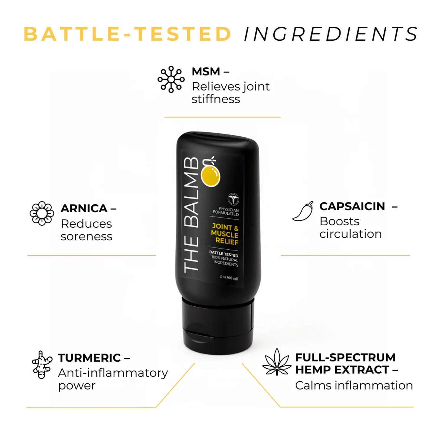 You don’t have time for pain. Whether it’s the ache that follows a hard workout or the stiffness that settles in after a long day, The Balmb™️ is your go-to muscle and joint relief cream designed to help you move freely and recover faster.